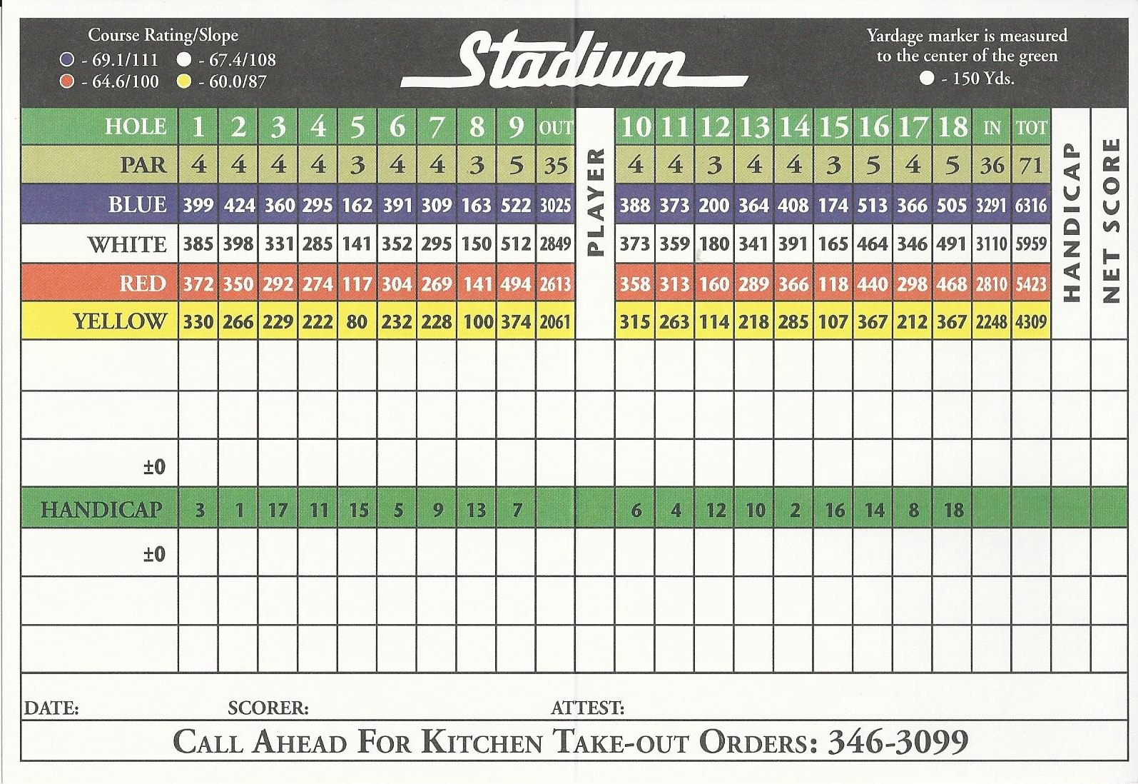 | Hole Front Nine | Blue 3025 yds |